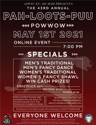 For more information, visit the Powwow Facebook Page: Facebook.com/Pah-Loots-Puu-Powwow-112667764245148